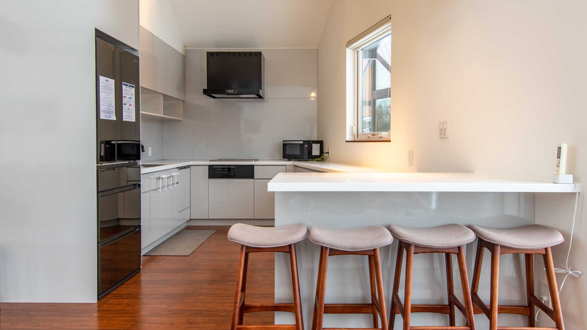Miyabi, a charming 4 bedroom chalet, is ideal for families or large groups. The floor plan incorporates an open-plan living, dining and kitchen space upstairs along with one of its bedrooms. The remaining bedrooms, all with their own ensuite, can be found on the first floor. This chalet sleeps 8 guests. Up to 10 guests may be accommodated for an extra charge.
